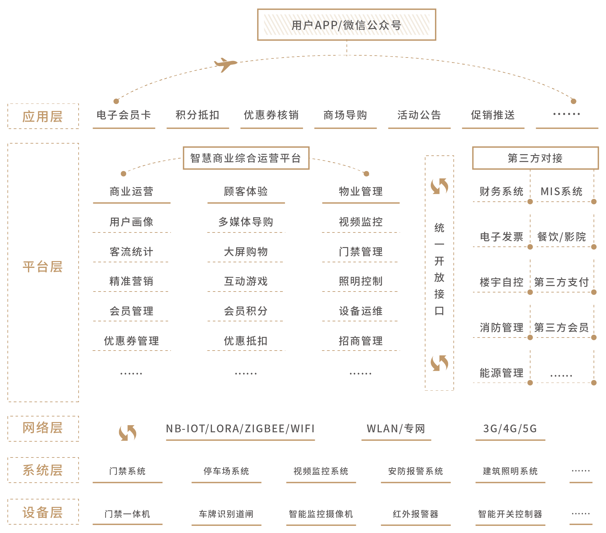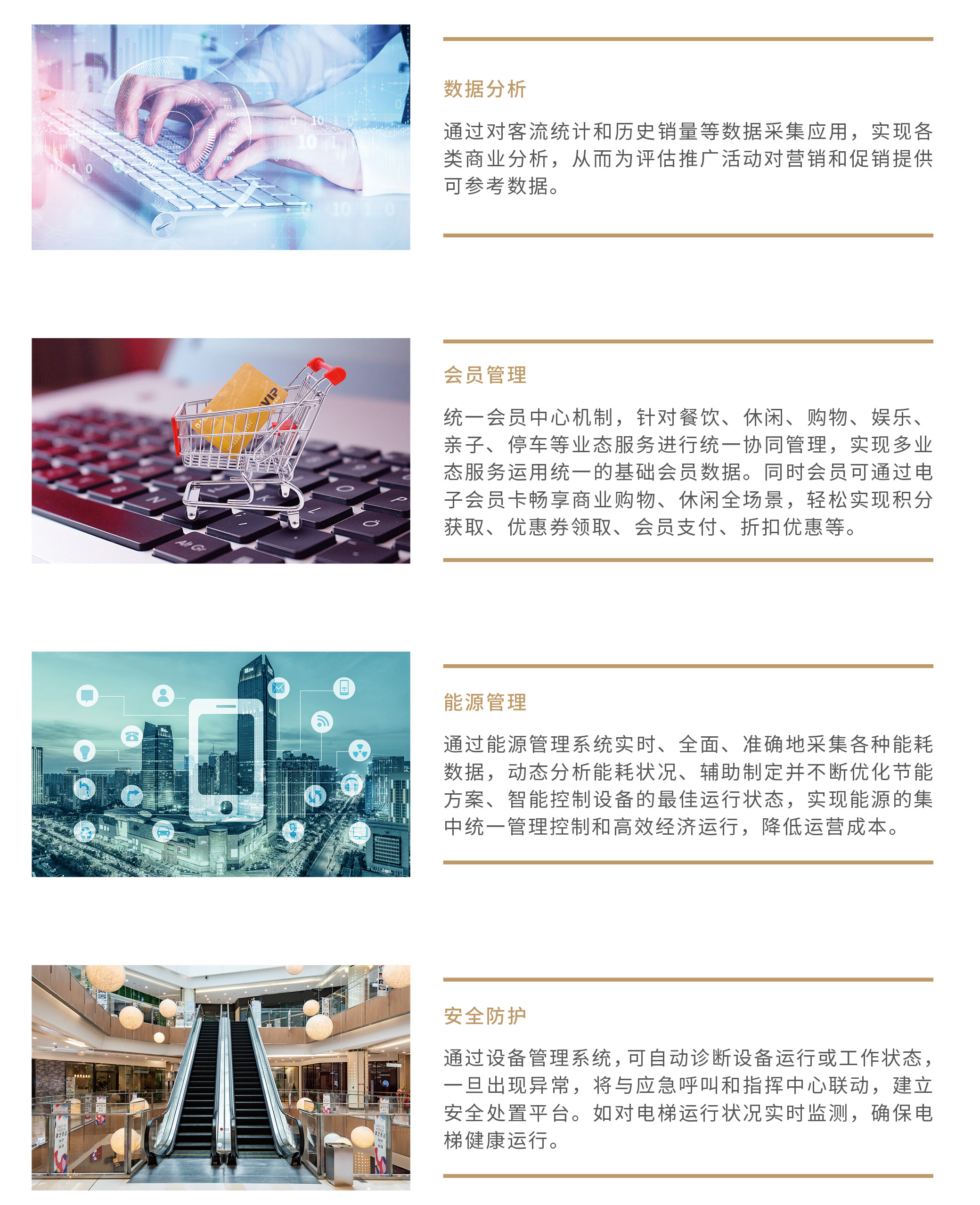 智慧商业米兰在线登录是针对目前商业综合体面临的痛点,利用物联网思维,通过智能化设施的投入,构建一个强大网络架构,实现综合体内的所有业务承载,涵盖商业项目的招商、运营、营销、顾客体验及安全管理等,从而助力传统商业转型升级,实现商业资产保值、增值。